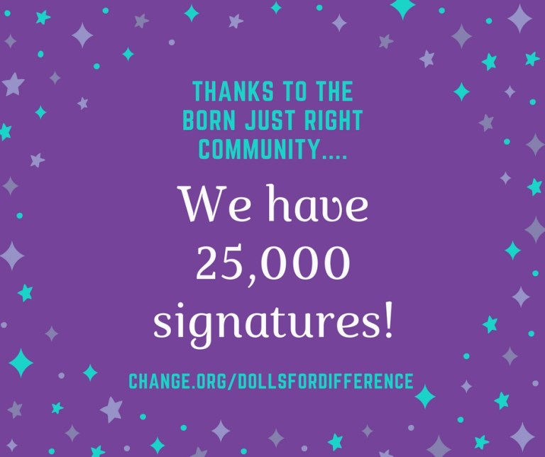 Thanks to you, Jordan's petition to ask American Girl and Mattel to include limb difference options with its Truly Me line of dolls is even stronger.We hit 25,000 signatures today. That's because of you. Thank you.In the time since Jordan launched this campaign, we could have never guessed how her work would grow. Born Just Right recently relaunched as a nonprofit! Check out our new website! We are very proud.Jordan is scheduled to speak at a number of events this fall and we have a one-day design event planned in Boston in July. We hope to grow more partnerships and sponsorships to help more kids in the disability learn how to use design skills for their benefit.Today, we celebrate. Thanks again. We are honored so many people would click a few buttons, share a few words and let a large toy company know that it's time to change the toy industry!-Jen and JordanThank you for your ongoing support.
